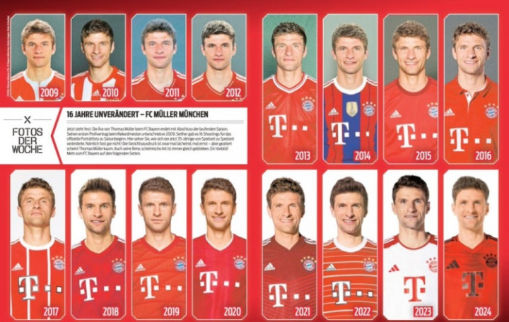 《体育图片报》晒出穆勒历年定妆照,配文:“现在已经确定——托马斯-穆勒在拜仁的时代将在本赛季结束后画上句号,他于2009年与球队签订了第一份职业合同,从那以后已经拍摄了16张新赛季官方肖像照。”